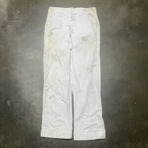 Vintage 40s 50s White Cotton Buttonfly Workwear Pants 28x27