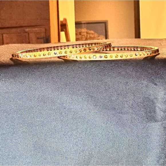 2 slim gold yellow bangles with rhinestones all round - these appear to be made of plastic or maybe bone (like bone handled knives)