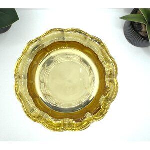 Crafted with a striking cascade block design and a scalloped rim, this vintage yellow glass vase is ideal for enhancing decor with timeless elegance.