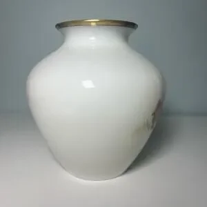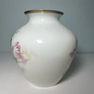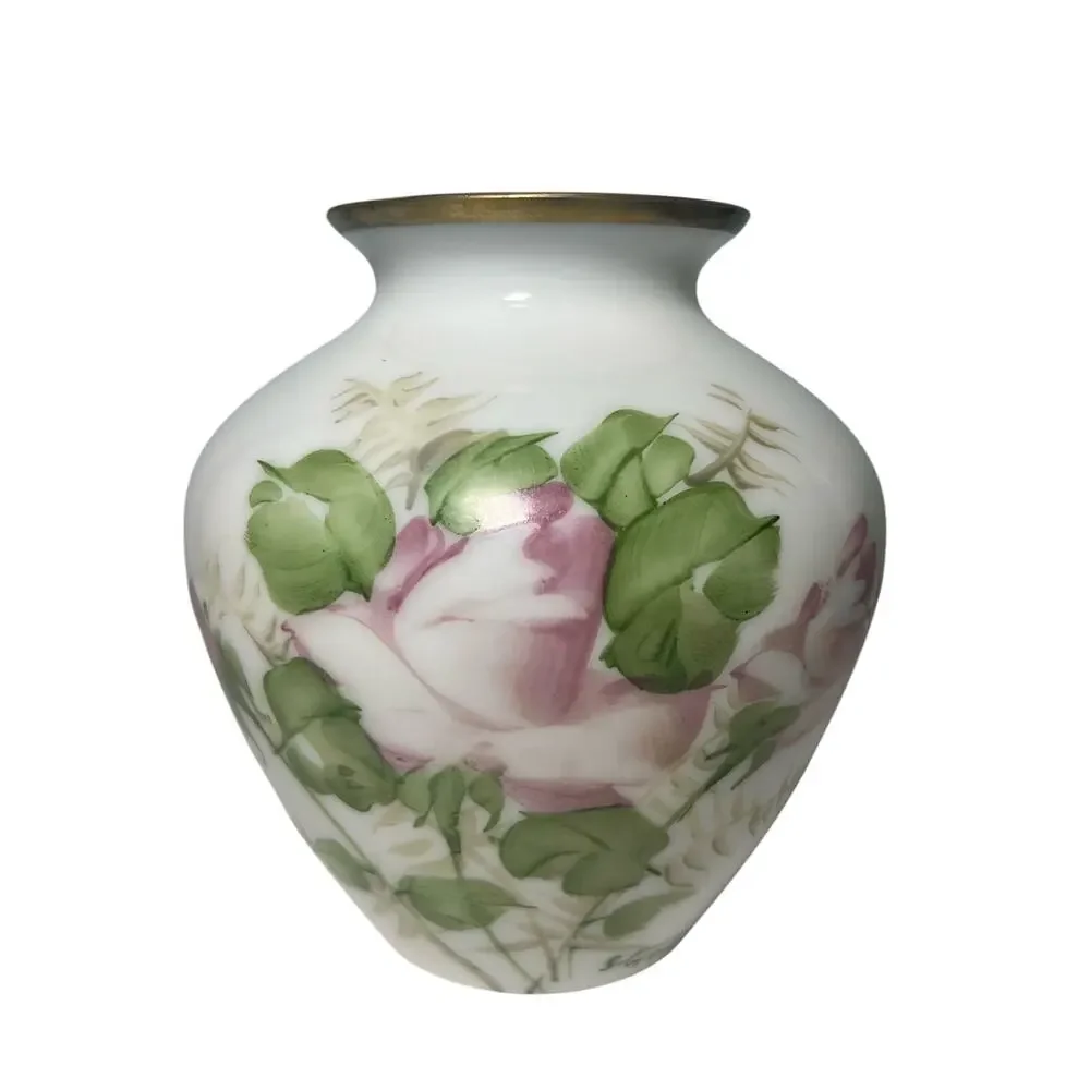 Vintage DeLuxe Inc USA Signed Hand Painted Floral Vase Milk Glass