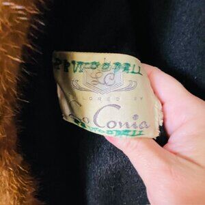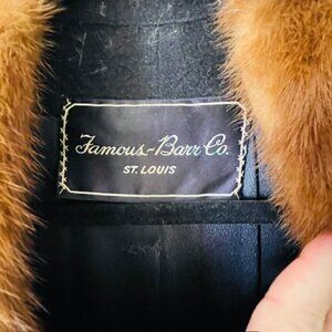 Vintage 40's Famous Barr Mink Brown Fur Trim Wool Black Coat