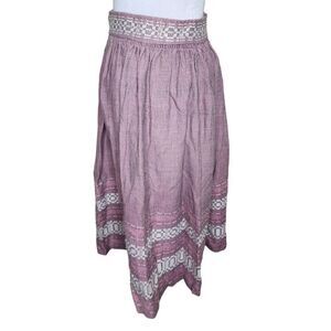 Vintage 40s Hand Woven Embroidered Skirt Womens Size S Pink Check Circle