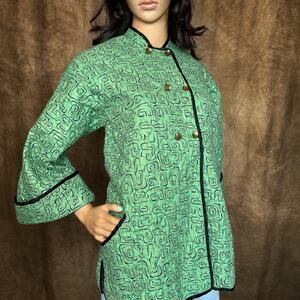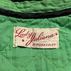 Vintage 40s Lady Juliana Housecoat Green Jacket Quilted Geometric Double Button