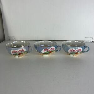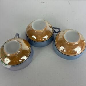 Vintage 40s Lusterware Tea Cup Set of Three Hand Painted Bone China JAPAN