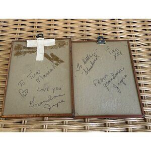 This charming pair of vintage 1940s silhouette pictures features reverse painting on convex glass. Each measures 5x4 inches, perfect for adding a touch of nostalgia to your home decor. These have no chips or cracks and are in good displayable condition.