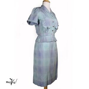 Vintage 40s Peplum Top and Skirt Set WWII Plaid Cotton Metal Zip Size S -Hey Viv