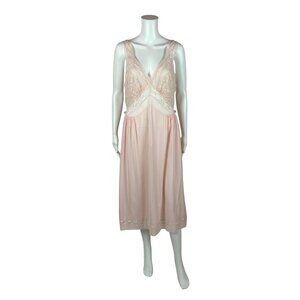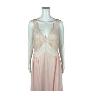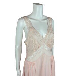 Vintage 40s Pink Nightie Women's Medium Lace Bodice Dressing Night Gown Luxite By Kayser