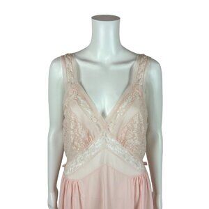 Vintage 40s Pink Nightie Women's Medium Lace Bodice Dressing Night Gown Luxite