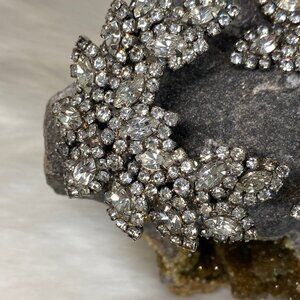 Vintage 40s Prong Set Rhinestone Demi Parure 3 Pc Necklace & Brooch Set