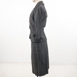 Vintage 40s S 2 Piece Skirt Set Blazer Suit Gray