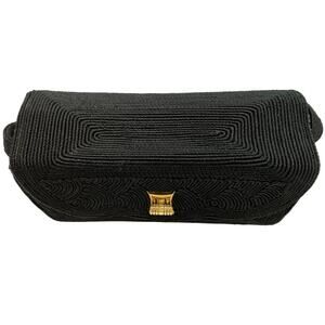 Vintage 40s Small Black Cordé Box Bag | 7 x 3 x 2 5/8