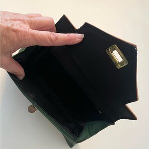 Tooled Leather Flap with Green Suede Cluth Dance bag in Great condition. With no issues I see. Approx measures are 10” by 5.5”