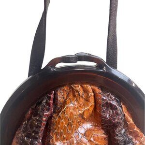 Vintage 40s Women's Brown Snake Skin Crossbody Shoulder Bakelite Closure Bag