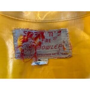 Vintage 40s/50s Men's SATIN Bowling Shirt "1" Embroidered on the Back, Yellow/Orange in Color