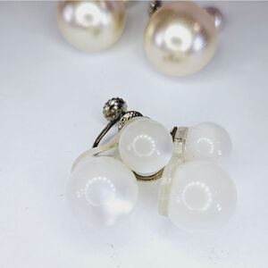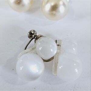 Lot of 3 Pairs of Vintage Screw Back Lucite Soap Bubble Faux Pearl Crystal Dangle Earrrings