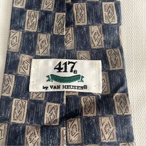 Vintage 417 Van Heusen Italian Silk Necktie Tie Blue Beige