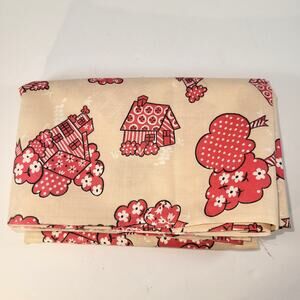 Vintage 44" x 63" Red Tan House Trees Floral Fabric Country Retro Originelle