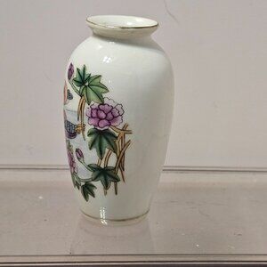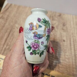 Vintage 4.75 Inch Mandarin Duck Vase Genuine Porcelain Trimmed in Gold