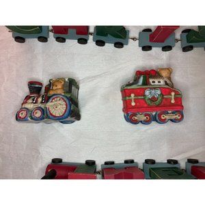 Vintage 4-Piece Christmas Train Set Midwest Taiwan~Hand Painted Ceramic Figurine and Word Letters Train Set.