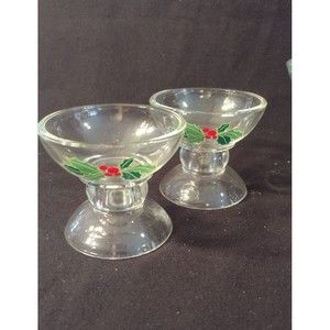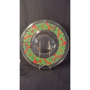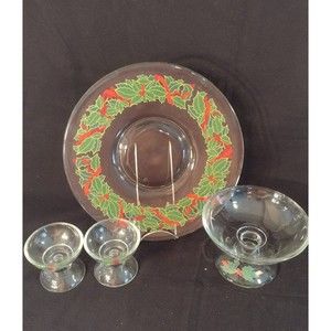 Clear Glass Holly Platter 11" , Holly Compote/Candy Dish and 2 Clear Glass Holly Candle Holders.