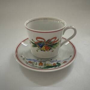 Vintage 4pc Set Salem China Christmas Eve Teacups and Saucers Holiday Dinnerware