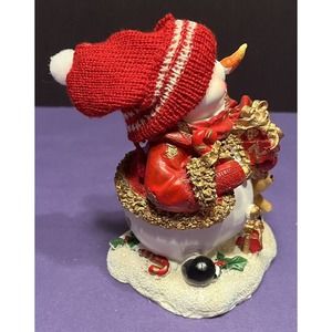 This vintage Snowman figurine is the perfect addition to your Christmas decor. With a colorful knit toboggan hat and a cheerful smile, this small figurine is made of durable resin and is an original piece from Dolgencorp. Perfect for collectors of winter-themed items, this Snowman is sure to bring joy to your home during the holiday season.