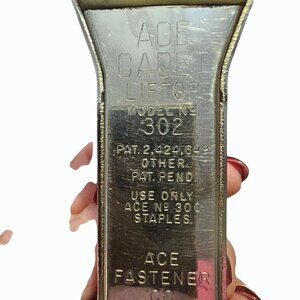 This is a vintage Ace Cadet Lift Top model 302 stapler from Ace Fastener Co. Chicago, Illinois made in the USA that is in good overall condition with light wear to stapler shown in pics. Tested and works fine. Comes with staples shown. Great pickup for Ace Cadet fans, vintage stapler collectors, vintage office supply collectors and looks great on display too!