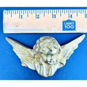 Vintage 5" Brass Cherub Angel with Wings Small Catholic Collectible Wall Hanging