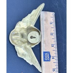 This vintage 5" brass cherub angel with wings is a small Catholic collectible wall hanging, perfect for those with a faith in Christianity. The angel is crafted in India but is not handmade, making it a unique and timeless piece for any religious collection. With its intricate design and country of origin, this cherub angel adds a touch of spirituality to any home decor or collection.