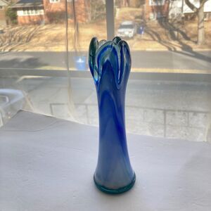 Vintage 5 Finger Blue Swung Vase Art Glass Bud Vase Stretch Glass 8 inches Tall