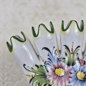 vintage collectible collection collector hand painted florals flowers tulips 5 finger vase Portugal decor decoration gift gifts birthday holiday classy classic