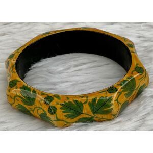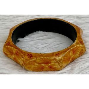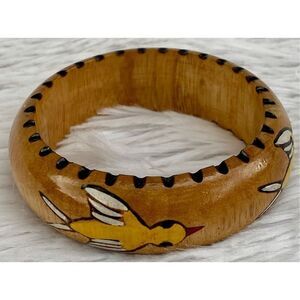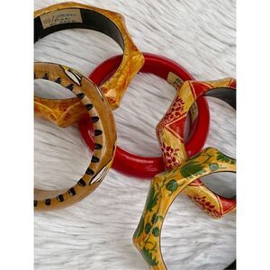Vintage 5 PC Set Wooden Hand Painted Boho Bangles From India
