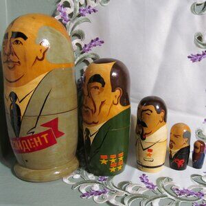 Vintage 5 Russian Political Leaders Wooden Matryoshka (nesting) Dolls Gorbachev