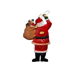 Add a touch of vintage charm to your Christmas tree with this 5" slim design Santa Claus ringing bell ornament bag toy. Crafted from durable plastic, this ornament features a jolly Santa Claus in his classic red and white outfit, complete with a ringing bell and a sack of toys. Perfect for collectors and holiday enthusiasts alike, this ornament is a must-have for any Christmas tree.