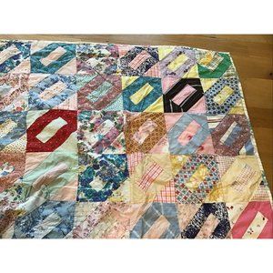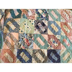Vintage 5” Square Hand-sewn Quilt with Floral Back 67” X 77”