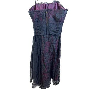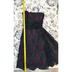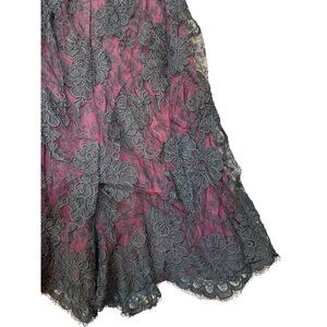 Vintage 50' s 60's Black Lace Overlay Burgundy Whimsygoth Crepey Delicate Floral