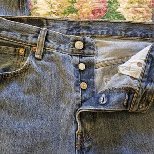 Levi 501 button fly with rivets on all front pockets. Original tags. Nicely broken in.