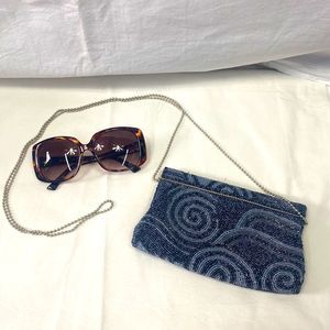 Vintage 50ies pearl embroidered satin Pochette pouch frame shoulder bag