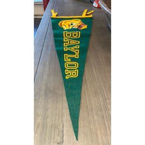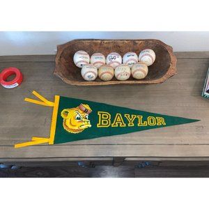This vintage pennant from the 1950s features the iconic sailor bear mascot of Baylor University. The pennant is a great addition to any collection of historical memorabilia or sports memorabilia. The item was made in the United States and has not been modified. It is perfect for fans of Baylor University or anyone looking for a unique piece of vintage decor.