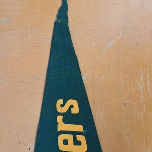 Vintage Green Bay Packers NFL team pennants are in good condition with normal vintage wear that has been pictured. The green one is wool from the '60s with wear that has been pictured. Good print. The 1997 Super Bowl pennant is in good condition with normal wear with no pin holes from hanging.