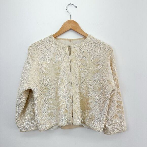Vintage 50s 60s All Over Iridescent Sequin Art Deco Inspired 3/4 Sleeve Cropped Formal Occasion Jacket
