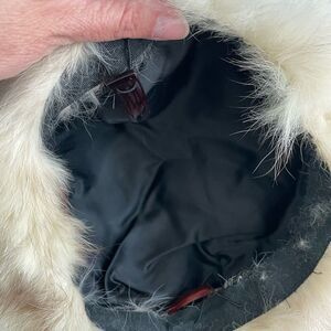 Vintage 60s B Siegel authentic fur hat in a light blonde/ivory color tipped in brown in some spots. B Siegel was a high-end department store in Detroit and this hat is authentic fur, I think coyote or fox. Grossgrain ribbon and satin lining. Two elastic loops that hold tiny combs to attached to your hair. This is women’s small or medium, I have a large head and it just isn’t quite secure. Dr. Zhivago style. Just shy of 21 inches interior circumference.