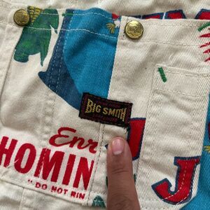 Vintage 50s 60s Big Smith Jim Dandy Hominy Grits All Over Print Overalls 36x31