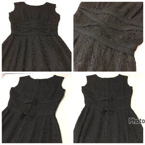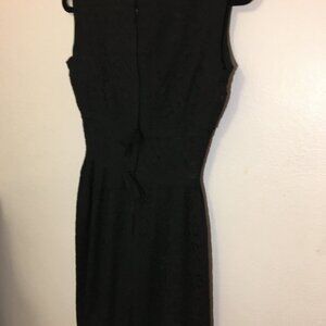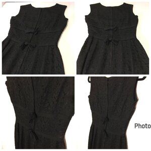 Vintage 1950s 1960s glam wiggle dress with back bows. This dress is AMAZING - sorry that I can't photo black!! True black lace over a satin type material. Criss cross in front with two small bows in back. Back metal Talon zipper with hook and eye. THE perfect LBD for the office party - all eyes will be on you!