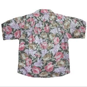 Vintage 50s or 60s Floral Short Sleeved Button Down. No size or fabric tag, fells like cotton. Lightweight and breathable. Some slight fraying of fabric along the buttons. Natural vintage fading.
