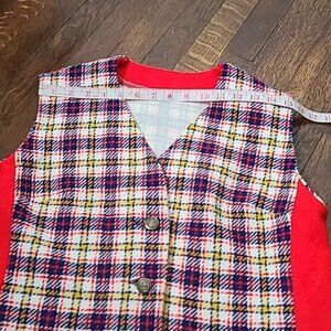 Vintage 50s 60s Handmade Red Blue Yellow Plaid Vest Unisex Napolean Buttons
