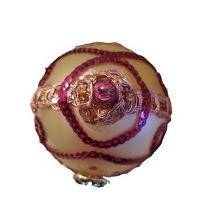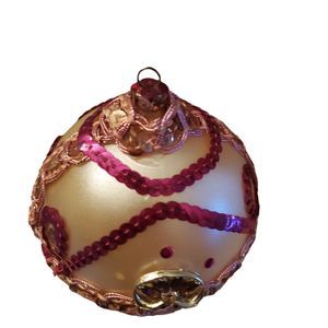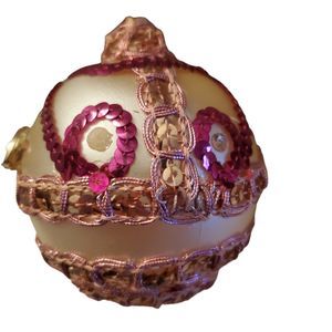 Vintage 50s 60s Mercury Glasses Hand Decorated Beaded Sequin Ornament sz Large