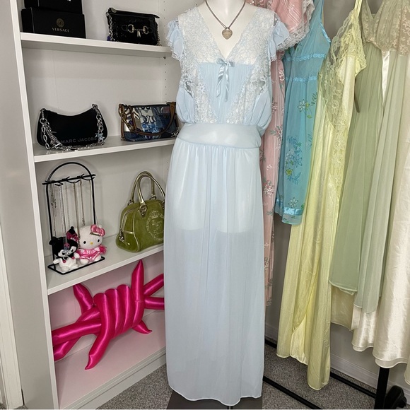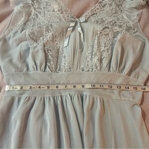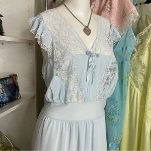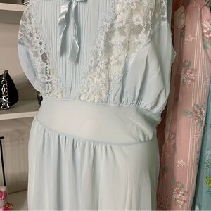Stunning powder blue nightgown with lace cut outs and ruffle cap sleeves and a drop waist