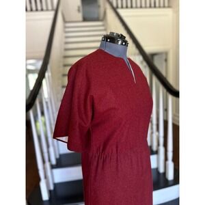Vintage 50s 60s Pendleton Midi Dress Burgundy Wool Midcentury Rockabilly Modest