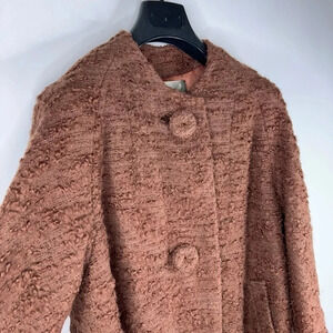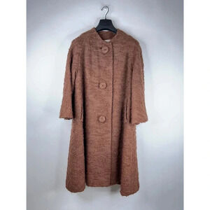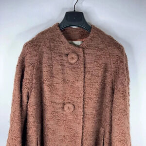 Vintage 50s 60s Swing Coat Brown Textured Spauldings Large Buttons Medium Large